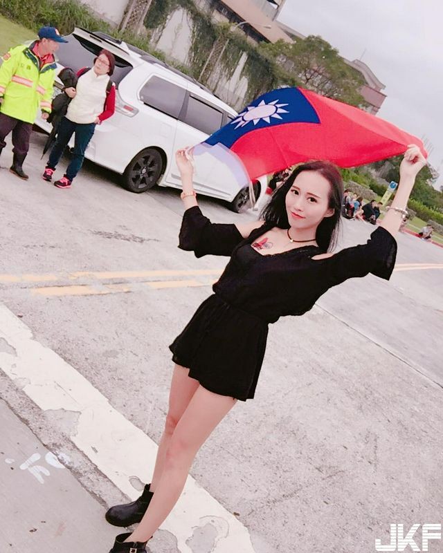 美女林倢筠手持国旗激起广大国民的爱国之心!难不成这就是相忍为国吗